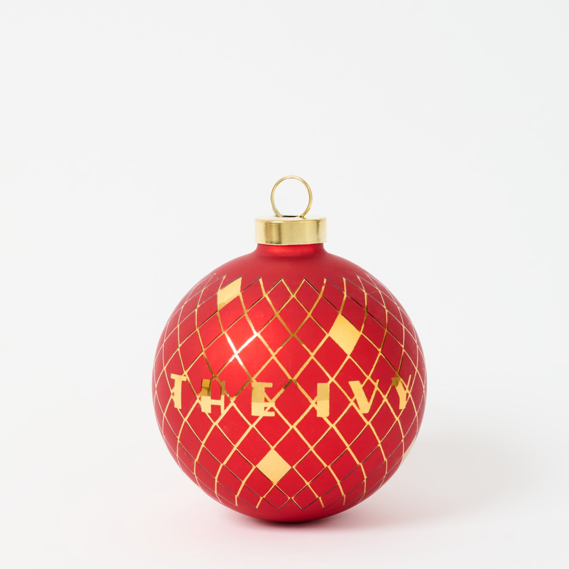 Celebrate the season with this Limited Edition Classic Christmas Bauble in rich dark red. Crafted from premium glass and finished with elegant gold detailing and The Ivy logo, it arrives in a green presentation box embossed with an illustration of The Original Ivy. The perfect Christmas keepsake - a way to celebrate special festive moments and family traditions.